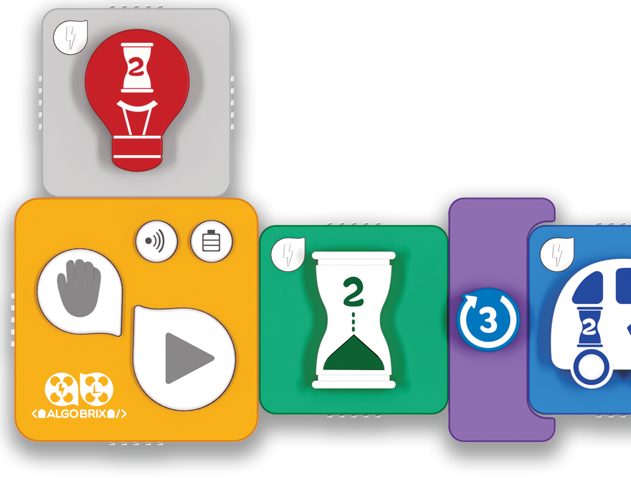 Young Engineers veruje u edukaciju kroz Tehniku spiralnog učenja. U ovoj metodi, svaki razvojni program nadograđuje se na prethodni programski nivo. Pored toga, uvek podstičemo nove učenike i povezujemo lekcije kako bi bili sigurni da su svi učenici upućeni. Uz pomoć opipljivog programerskog jezika Algobrixa®, učenici počinju graditi model s kockicama, zatim prave razne programerske sekvence koristeći kockice Function & parameter. Na kraju, pritiskom na kockicu Play, robot će izvesti programiranu sekvencu.