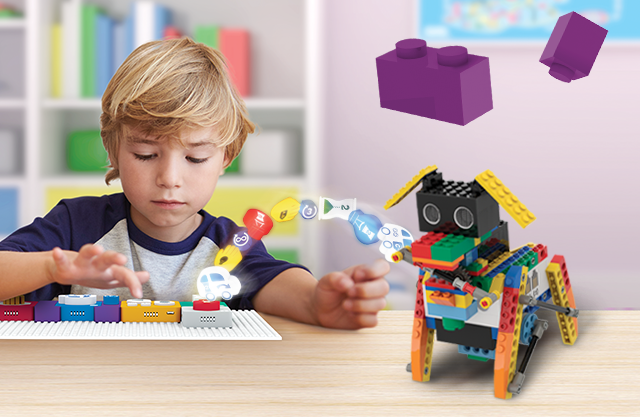 Sklapajući kockice Function & Parameter, dete stvara niz komandi koje će robot izvesti. Na primer, da se pomeri napred ili upali crveno svetlo.